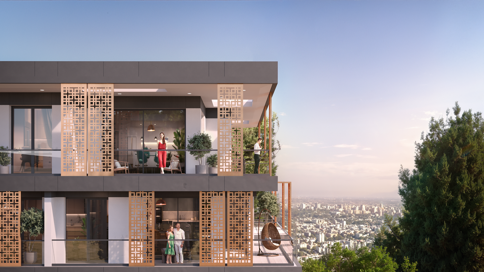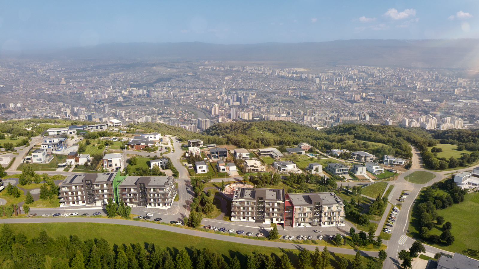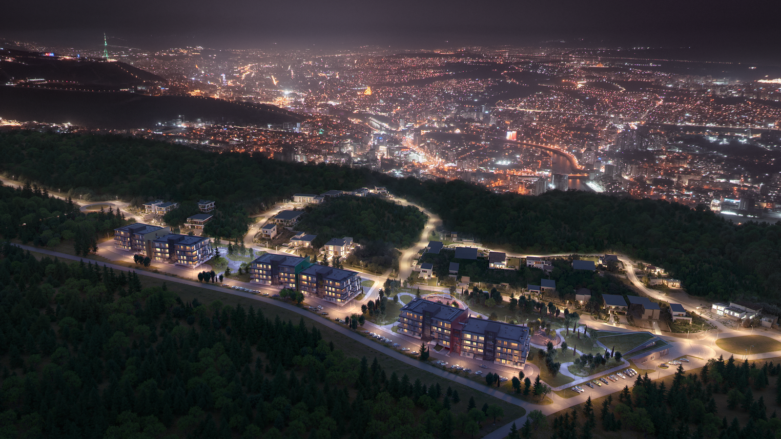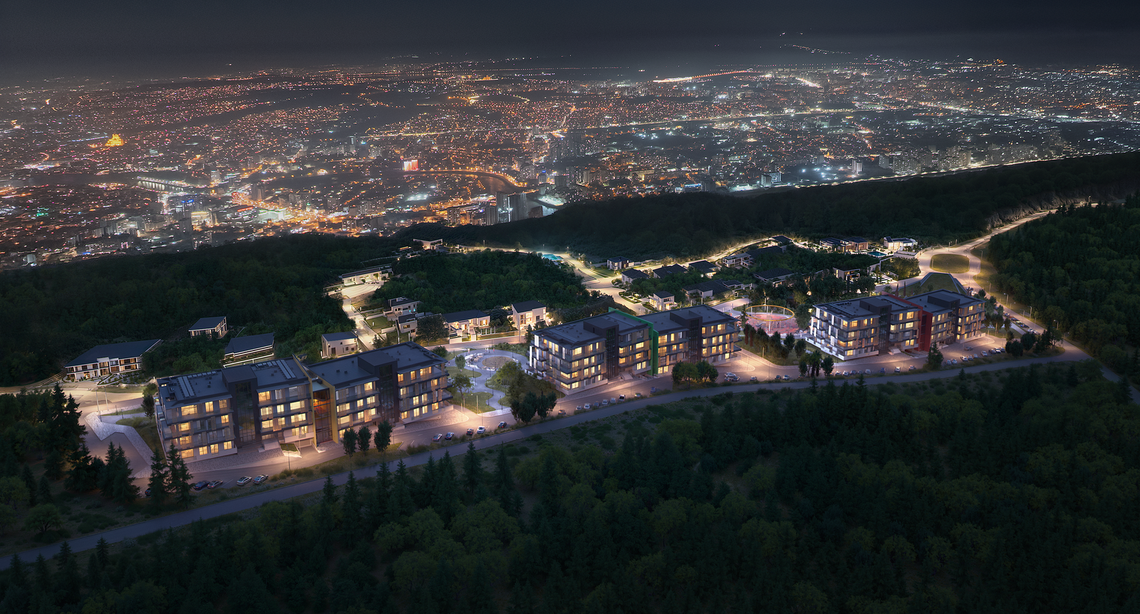 The Tbilisi Hills project features contemporary apartment buildings and a multifunctional commercial center, seamlessly integrated into the natural landscape on the outskirts of Tbilisi. The residential architecture emphasizes spacious layouts, large windows, and panoramic city and mountain views, blending modern aesthetics with comfort. The commercial building seamlessly blends with adjacent 2ha park and offers flexible retail and catering spaces, designed to enhance daily convenience while maintaining a cohesive architectural identity within the mixed-use complex.
